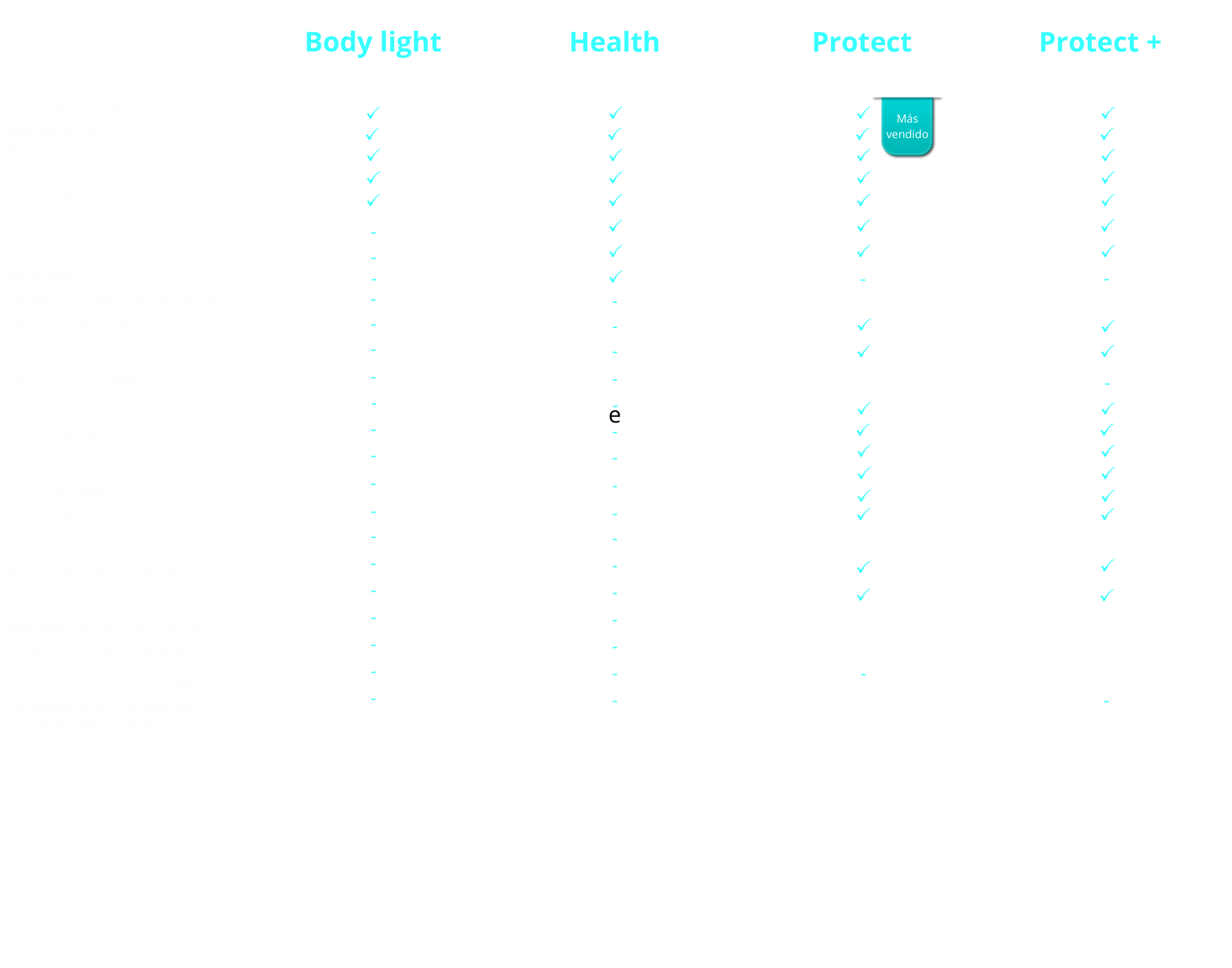 Cuentas con 2 consultas con médico general, al año, COSTO PREFERENCIAL| Consulta con médicos especialistas, 1 vez al año, COSTO PREFERENCIAL | Descuentos en estudios de laboratorio I Descuentos en medicamentos (Aplicable solo con farmacias en convenio) | En caso de emergencia, servicio de ambulancia a domicilio (2 veces al año SIN COSTO) | Médico a domicilio, 2 veces al año, COSTO PREFERENCIAL | Enfermera a domicilio, 1 vez al año, SIN COSTO | Segunda opinión médica, 1 vez al año, SIN COSTO